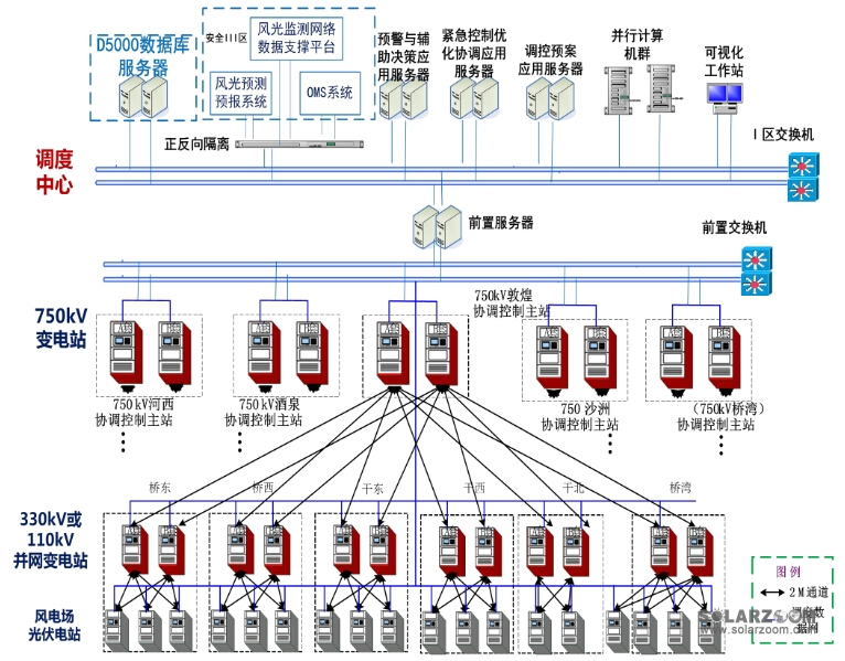 该技术通过配合大电网完成风-光-火-水协调调度、紧急控制,对 内协调控制各风电场、光伏电站、无功补偿设备等,采取集群内部的 在线有功控制、无功电压调整、运行优化和本地安全策略,进而提高 系统效率,减少弃风、弃光等现象发生。其应用主要基于以下几种研 究和技术:实时监测网络与数据支撑平台研究,联合功率预测及应用 支持系统研究,集群运行优化及安全稳定防线研究,风电场、光伏电 站集群控制策略研究,风/光电出力特性及建模验证和关键信息提取、 可视化与可扩展方面的关键技术等。