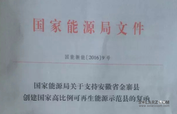 1月12日,国家能源局复函安徽省发展改革委、省能源局,同意我省金寨县创建国家高比例可再生能源示范县,要求金寨县人民政府按照《金寨县创建国家高比例可再生能源示范县规划》要求,以高比例可再生能源利用为核心,创新城镇可再生能源政策发展机制,积极推进县域可再生能源生产和消费革命,到2020年基本建成国家高比例可再生能源能源示范县,能源清洁化水平达到国内领先;到2025年能源清洁化水平达到国际一流,全县能源消费基本实现由可再生能源提供。