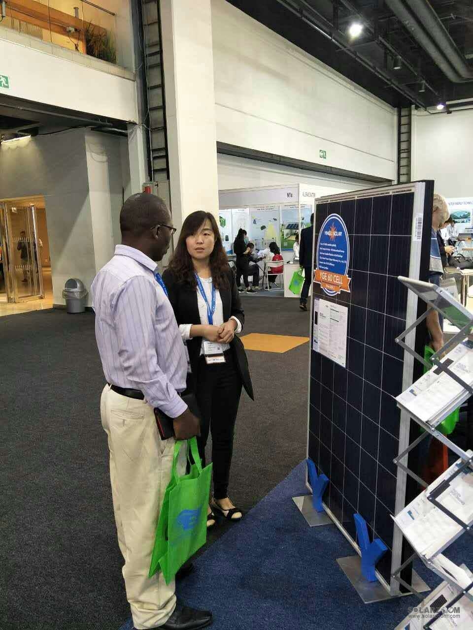 英利参展人员告诉记者,他们本次在这个最佳平台上向来自世界各地的客户展出了光伏组件、逆变器等关于太阳能光伏系统的各种产品。英利n型“熊猫”双面发电组件成为客户关注的焦点。据介绍,“熊猫”双面发电组件集成了英利最先进的n型单晶太阳能电池技术,具有双面发电特性,由两层2.5mm厚的钢化玻璃代替传统的背板和玻璃结构,能够提供30年线性质保,高于常规组件25年线性质保。组件背面能够接收周围的反射光和散射光产生电力,在理想安装条件下,可多发电10%-30% 。