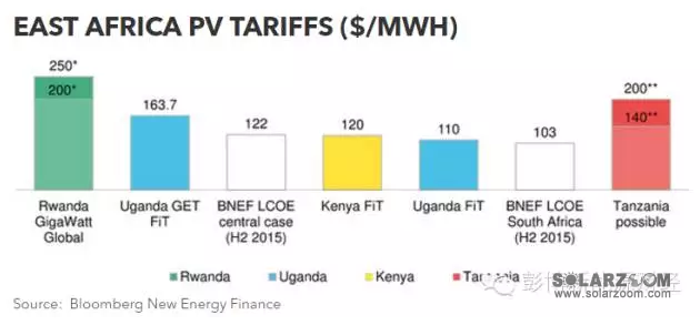 以下是东非太阳能上网电价的情况: