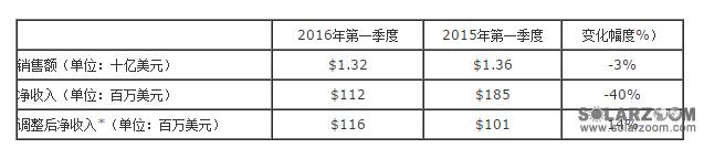 2016年5月4日道康宁公司近日公布2016 年第一季度财报,其销售额为13.2亿美元,较2015 年下降3%,净收入为1.12亿美元。2016 年第一季度调整后的净收入为1.16亿美元,较2015年第一季度增长14%。