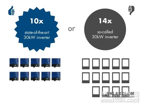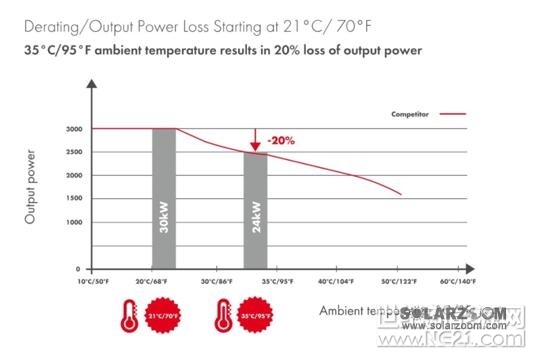 廉价的逆变器经常会在环境温度21℃时就有输出功率损失,它们无法处理光照下功率损失问题。