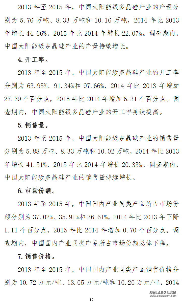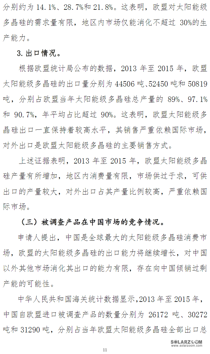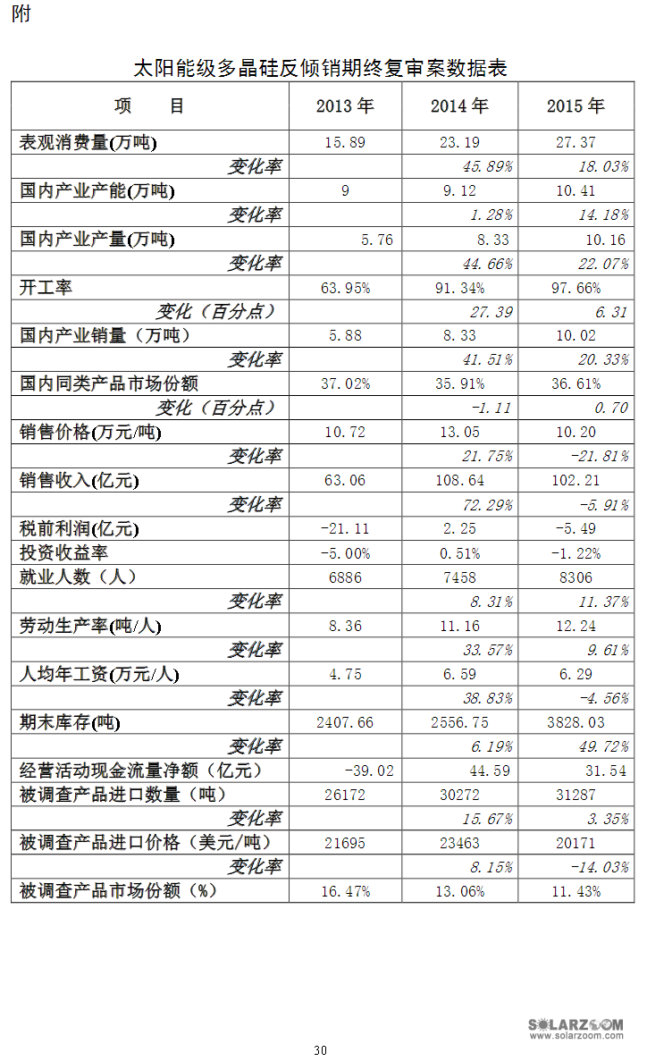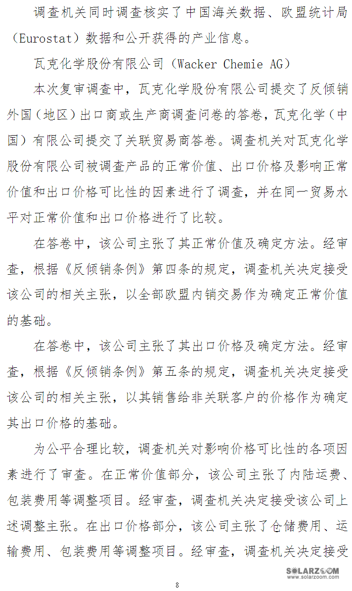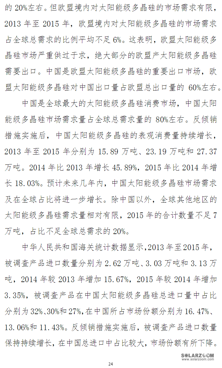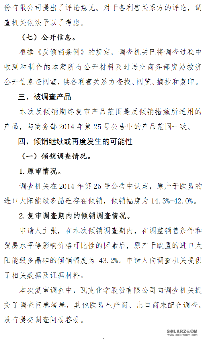 2016年4月29日,应中国太阳能级多晶硅产业的申请,调查机关发布2016年第16号公告,决定对原产于欧盟的进口太阳能级多晶硅所适用的反倾销措施进行期终复审调查。