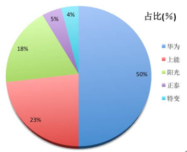 根据规定,应用于领跑者项目的逆变器产品要求企业逆变器年产能不低于200MW,含变压器型的光伏逆变器中国效率不得低于96%,不含变压器型的光伏逆变器中国效率不得低于98%,其次具备零电压穿越能力,而集中式逆变器需要能在1.1倍额定功率下正常工作2小时以上。据统计,一共有5家逆变器企业符合要求并入围大同采煤沉陷区国家先进技术光伏示范基地一期光伏电站项目,他们是华为、上能电气、阳光电源、正泰、特变电工。