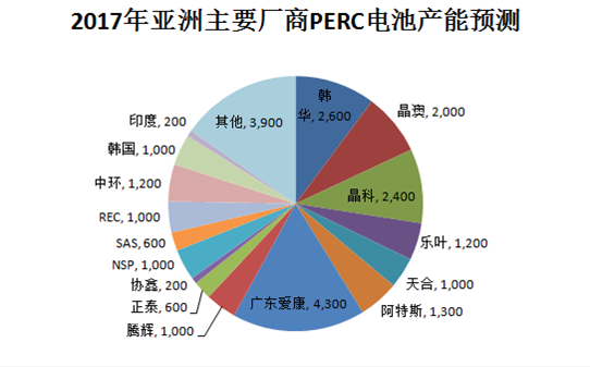 PERC技术在2014年开始成熟,2015-2016年迎来了产能的暴发增长期,一线厂商如晶科、晶澳、天合、阿特斯、协鑫、隆基乐叶、广东爱康、韩华Q CELLS、REC等均在积极扩产。据亚化咨询统计,2016年全球PERC电池产能已达15GW,2017年全球PERC电池产能将达30GW。随着PERC产线设备的持续完善和国产化,以及适用于PERC工艺的导电浆料和金属化技术的成熟,PERC电池产业化将迎来高峰期。