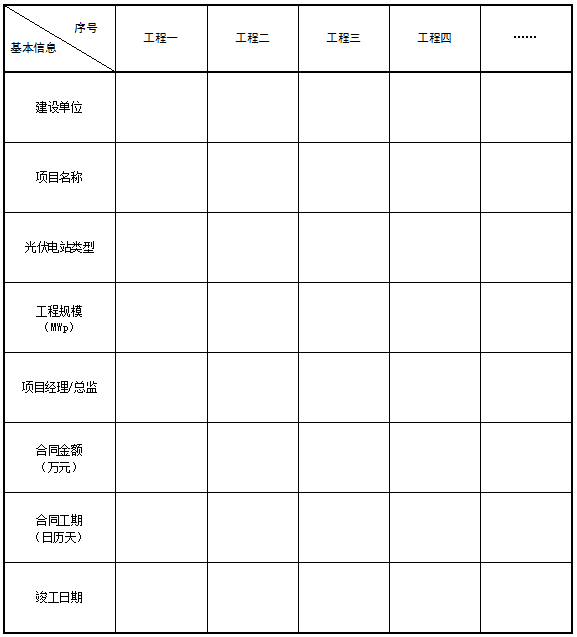 3.3.1 工程承包商基本信息:工程业绩一览表(近三年,劳务需提供光伏业绩)。
