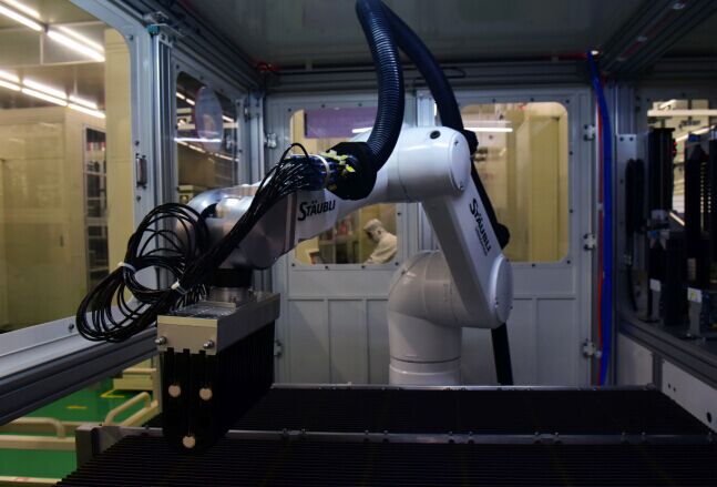 据记者了解,此生产线无论在自动化程度、建设规模还是建设速度方面都开创了新的行业纪录。一期1000MW电池项目于2016年6月30日在通威成都生产基地开工建设,仅用时7个月便建成投产。当日投产的生产线是二期项目,于2017年2月18日开工,设计产能为2000MW,至9月20日项目正式投产,产能规模和工程量虽然都翻了一番,所用时间也仅为7个月,创造出全新的“成都速度”、“中国速度”、“全球速度”。
