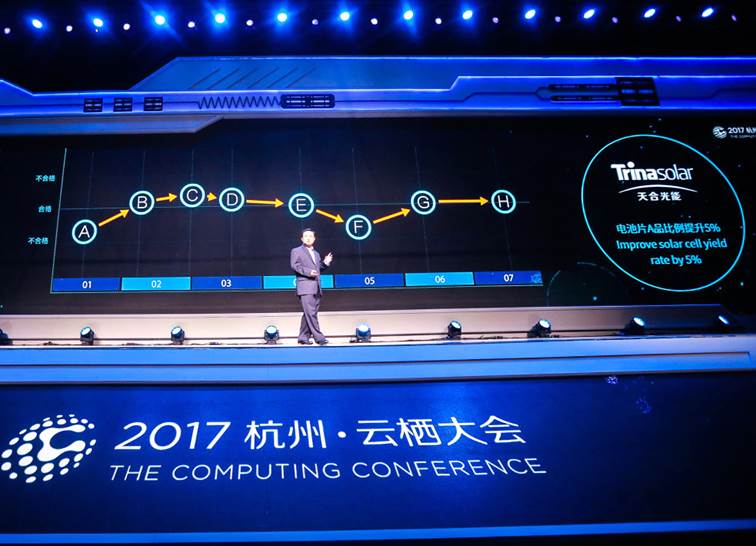 闵万里介绍道,天合光能引入ET工业大脑后,对上亿条生产数据进行实时分析,在上万个生产参数中找到最佳生产模型。人工智能为光伏产线找到了更优的生产工艺,提升电池片转换效率。
