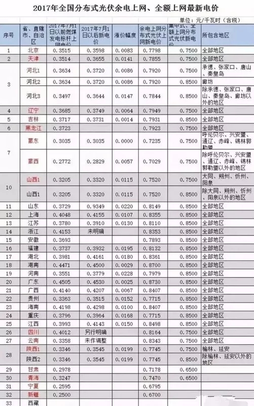 2017年下半年,我国各省市发改委相继公布了本地的最新燃煤机组标杆上网电价。随之,我国各省市分布式光伏余量上网电价也有了新变化。