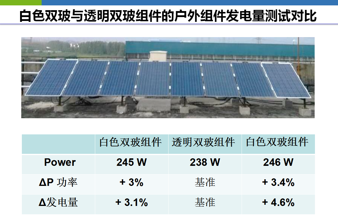白色双玻与透明双玻、普通组件的对比
