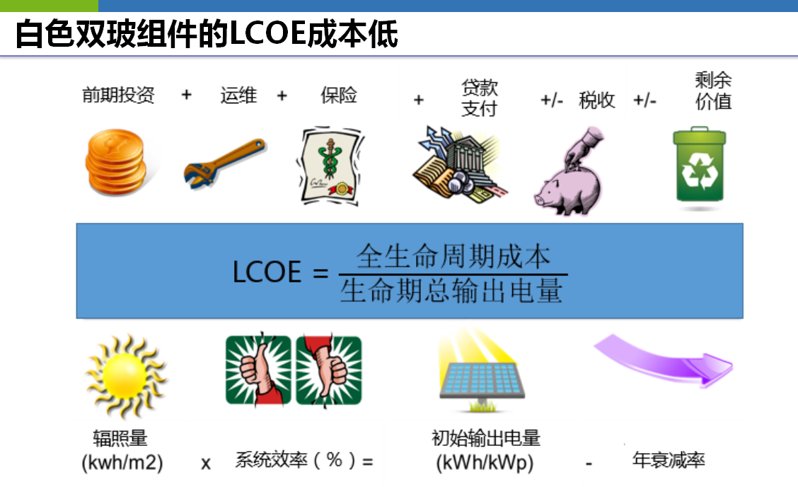 此外,白色双玻组件还具有LCOE成本低的优势。