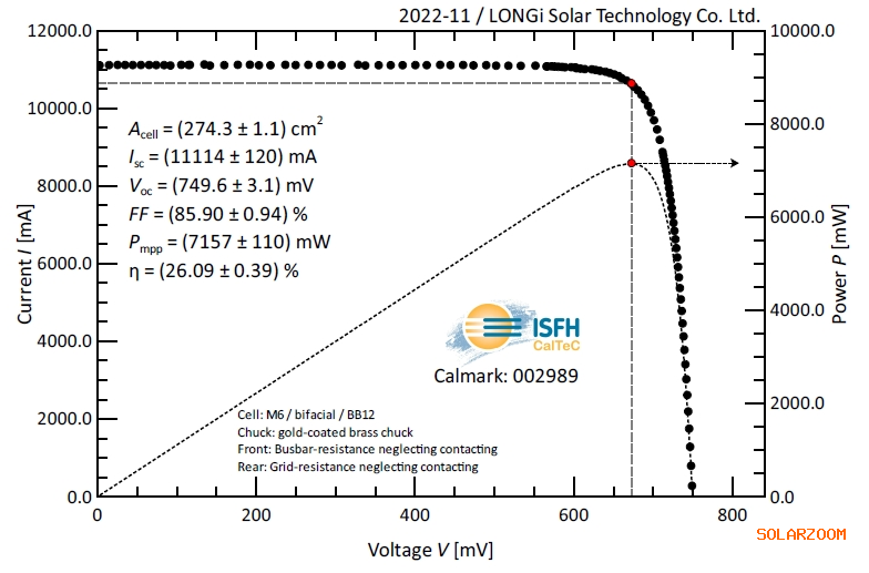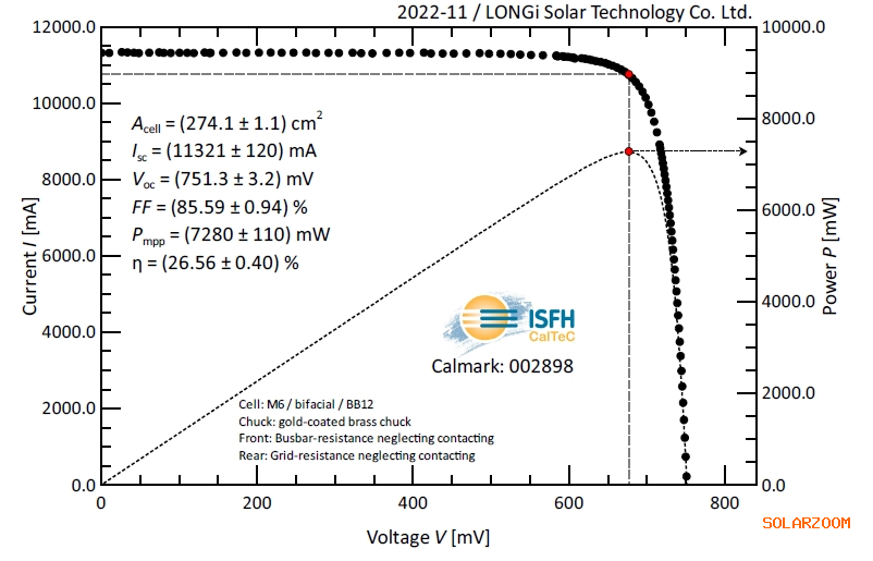 近日,经德国哈梅林太阳能研究所(ISFH)权威认证报告,隆基绿能在M6全尺寸单晶硅片和自研的量产型制程工艺基础上,创造了p型HJT电池26.56%、无铟HJT电池26.09%转换效率的新世界纪录,进一步夯实了低成本HJT电池的产业化技术基础。
