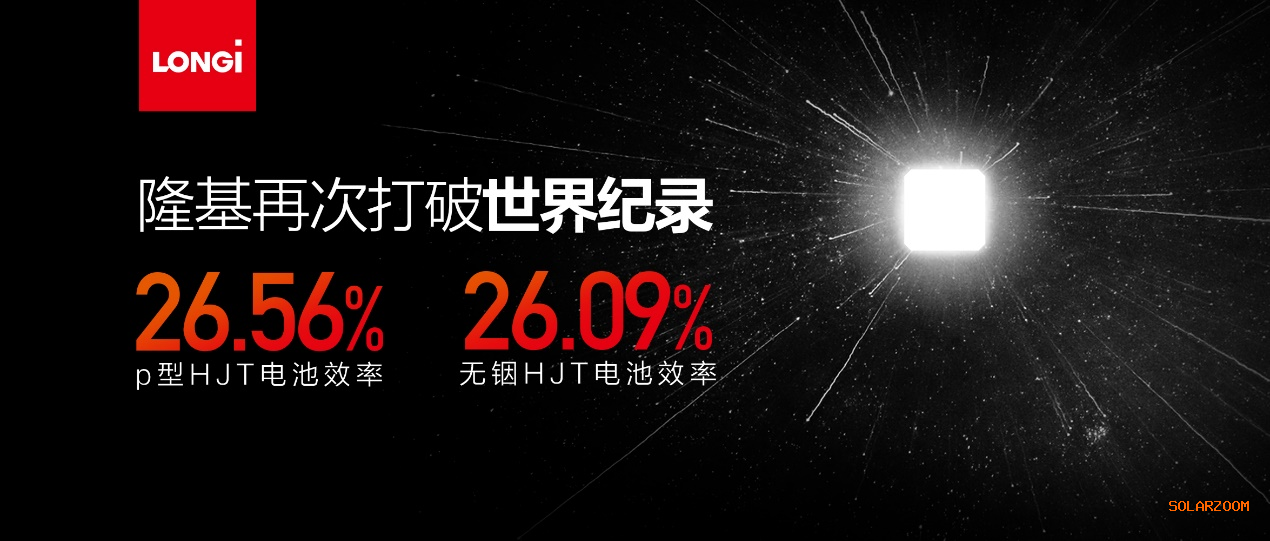 针对HJT电池长期以来的痛点问题,隆基绿能研发团队聚焦市场需求、勇于技术革新,成功地在隆基商用掺镓硅片上实现了26.56%的转换效率,较今年9月公布的26.12%p型HJT电池效率又提升了0.44%,再次刷新p型晶硅电池效率的最高纪录。