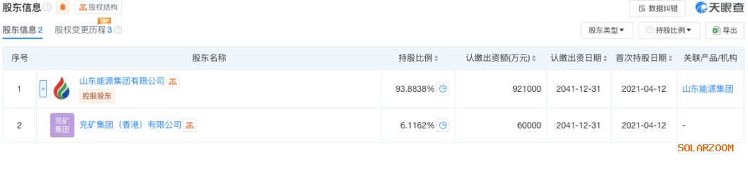 据悉,山东能源集团新能源集团前身为山东能源电力集团,注册资本98.1亿,现运、在建、筹备电力总装机规模2071万千瓦,产业分布全国5省(区)20地(市),资产总额569.47亿元,跻身山东省属最大电力企业,股东为山东能源和兖矿香港公司。