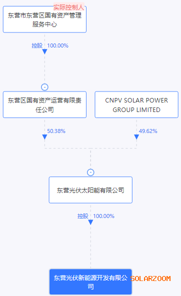 根据股权穿透显示,东营光伏新能源开发有限公司控股股东为东营光伏太阳能有限公司,后者为东营市东营区国有资产管理服务中心间接控股公司。