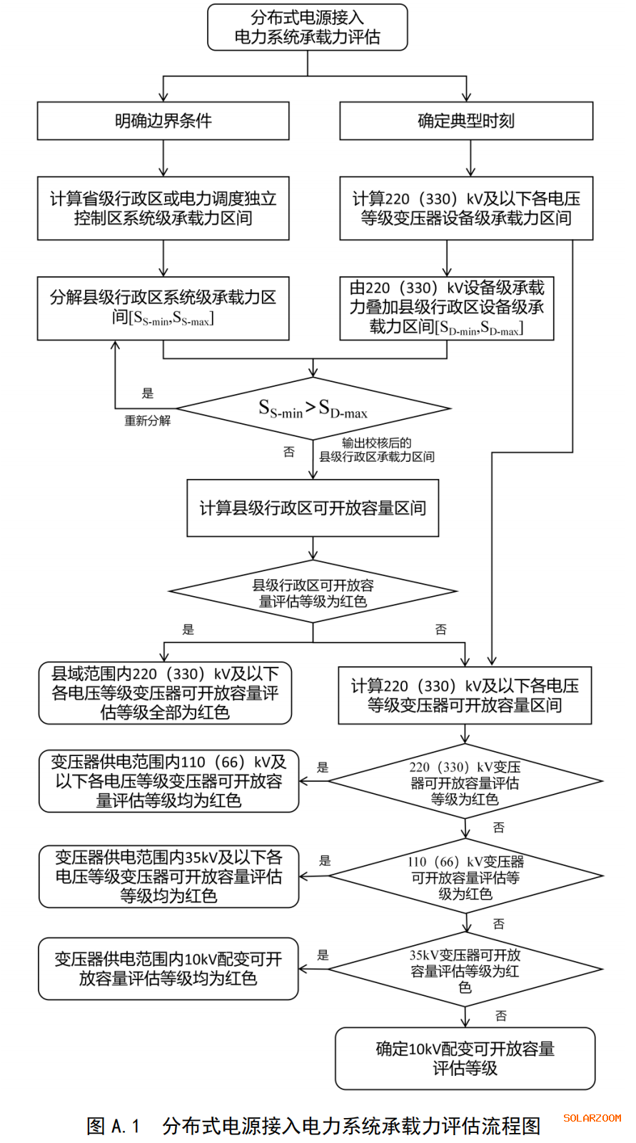 可开放容量评估应遵循下级服从上级原则,按照县级行政区、220(330)kV、110(66)kV、35kV、10kV变压器逐级开展评估。
