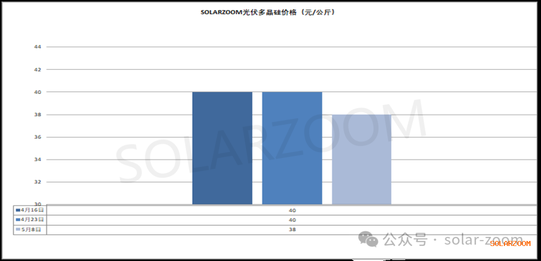 五一节前下游企业对硅料采购积极性不高,部分客户表示节后在谈,但本周来至节后仍未进入实质性集中采购工作,下游采购将继续观望延迟。当前国内下游采购企业仍在继续观望,随硅料价格的下跌趋势已明确,但最终签单落地价格的博弈随着下游各环节的大幅下跌而更加胶着。本周硅料成交鲜少,因此也暂未有明确的实际成交价格,但趋势相比五一节前继续下跌,大厂N型用料价格在36-38元/公斤,二三线企业N型致密料34-35元/公斤,颗粒硅方面,整体价格下探明显,本周颗粒硅价格来至35元/公斤左右,市场也传出更低的价格。430国内抢装结束,终端需求下滑明显、价格下跌也是传导影响着硅料环节,尤其是下游硅片企业一直有硅料备货的情况下,硅料环节的库存也在继续上行,但受此影响国内计划新投的硅料产能释放恐将延期,同时部分在产硅料企业也开始计划检修减产;硅料价格短期仍将延续跌势,但成本压力下硅料价格可降的空间也已较为有限。