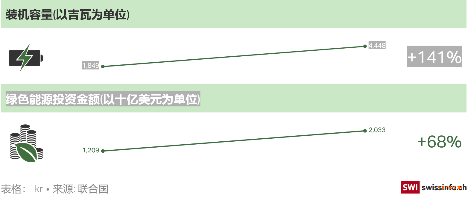然而,尽管可再生能源的发展在瑞士和全球范围内取得了一定程度上的进步,但其增长速度仍过于缓慢,且困难重重。同时,联合国的报告也指出,在化石燃料向可再生能源转型的进程中,“重大的政治和经济障碍”始终存在。