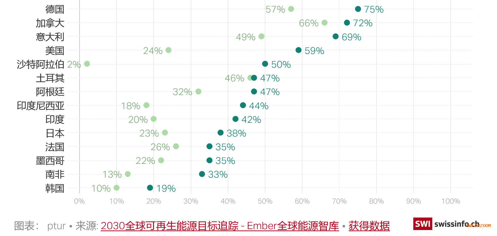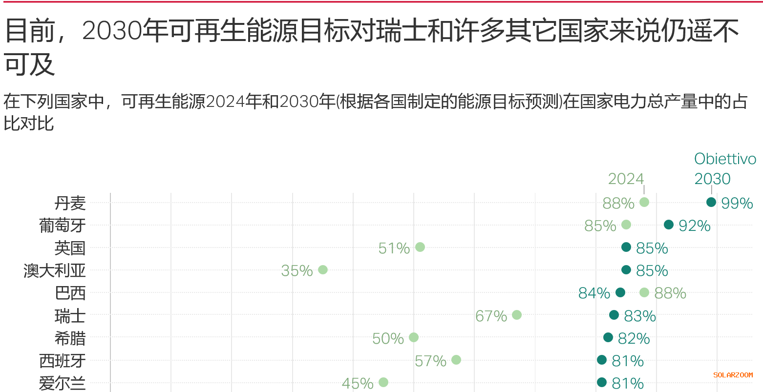 在实现能源目标方面,瑞士的进展同样迟缓。在2022年的一份自我评估报告中,瑞士政府承认,目前,瑞士境内可再生能源发电能力的扩张势头尚未达到实现净零排放目标所必需的水平。
