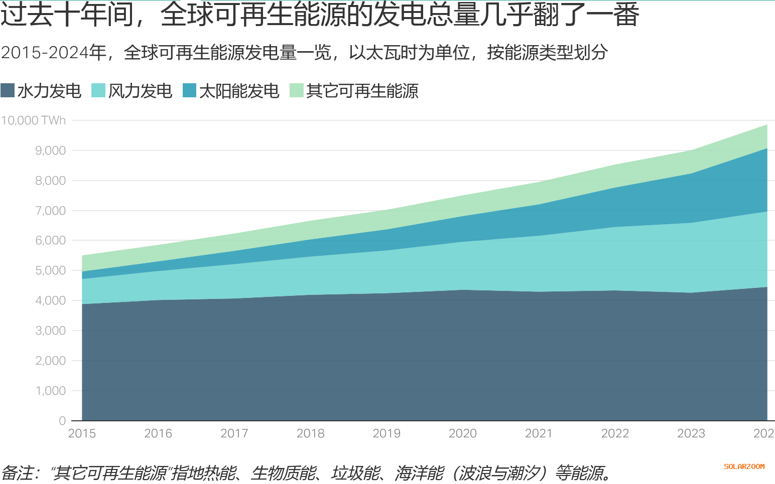 自2015年以来,可再生能源发电量几乎翻了一番