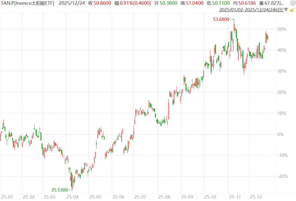 Invesco WilderHill清洁能源ETF和Invesco太阳能ETF今年迄今分别上涨约60%和50%。