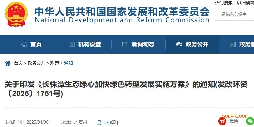 1月6日,国家发展改革委关于印发《长株潭生态绿心加快绿色转型发展实施方案》的通知。