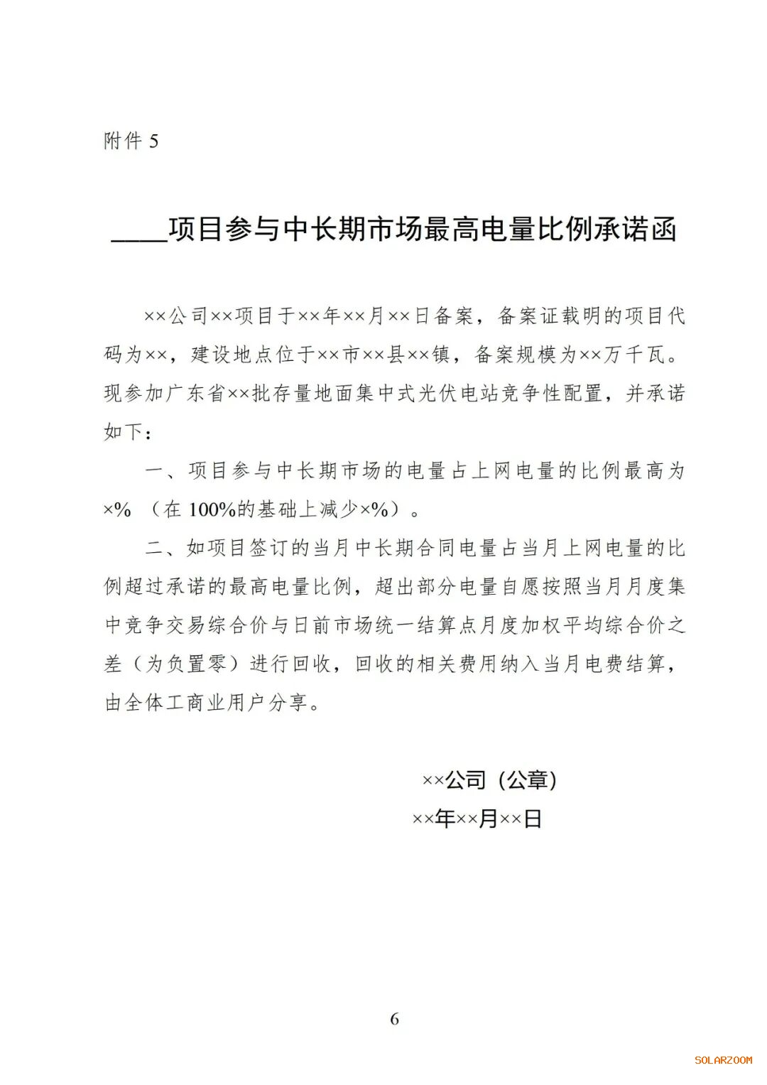 5.____项目参与中长期市场最高电量比例承诺函