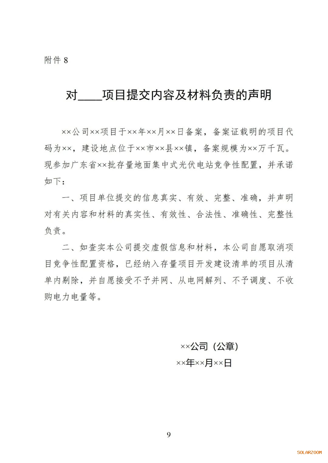 8.对____项目提交内容及材料负责的声明