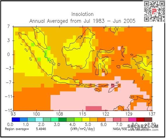 印度尼西亚,地处东南亚地区,地理位置处于热带地区,非常接近赤道,印尼太阳能辐射资源平均约为4.8KWh/m2/day。其中苏拉威西省,伊查安查亚省和巴里的大部分地区辐射量为6-6.5KWH/m2/day,山区辐射量为4.5-5.5KWh/m2/day;在低地形地区如加里曼丹省,苏门答腊省和爪哇,辐射量约为4-5 KWH/m2/day。